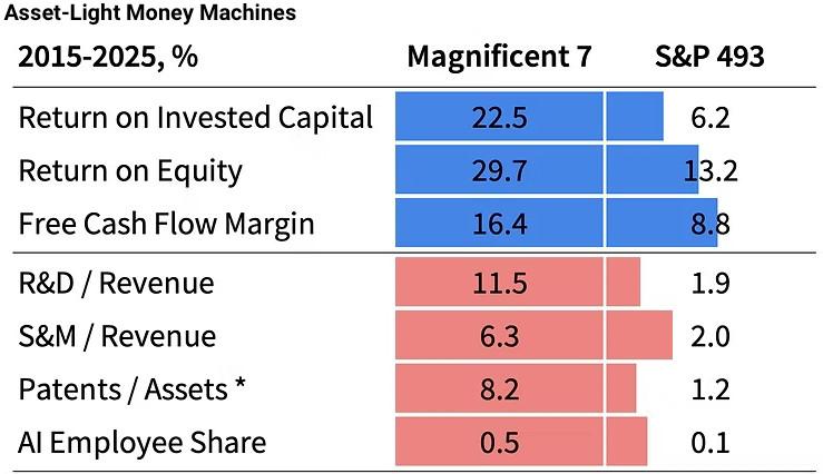Het kost de techbedrijven relatief weinig om die immateriële competitieve voordelen op peil te houden. Daardoor halen ze abnormaal hoge rendementen op het geïnvesteerde kapitaal en stroomt de cash hen aan een nooit gezien debiet toe. ‘Asset light money machines’ noemt Wu ze.