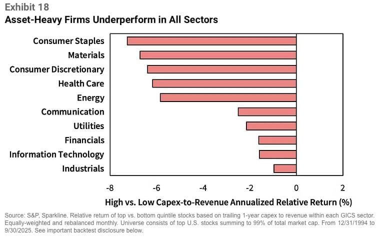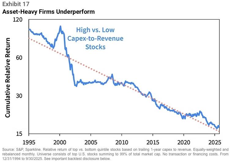 Dat is een veeg teken voor hun aandeelhouders, want bedrijven met hoge kapitaalinvesteringen doen het op de beurs minder goed dan hun investeringsschuwe concurrenten.