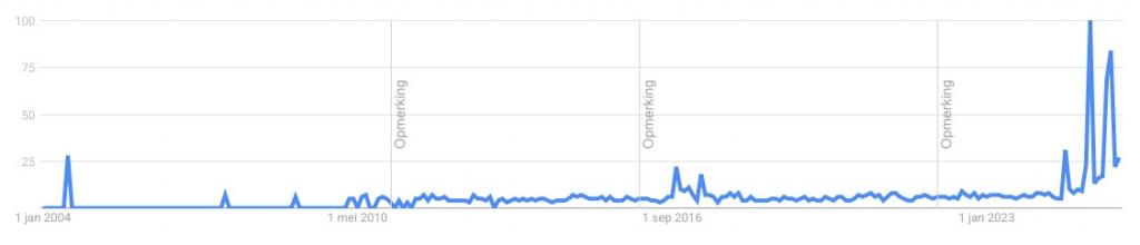 Tegenover de afgelopen twintig jaar zorgde de term de laatste maanden voor een piek in volatiliteit in het zoekgedrag van de Belgen, om in beurstermen te blijven.