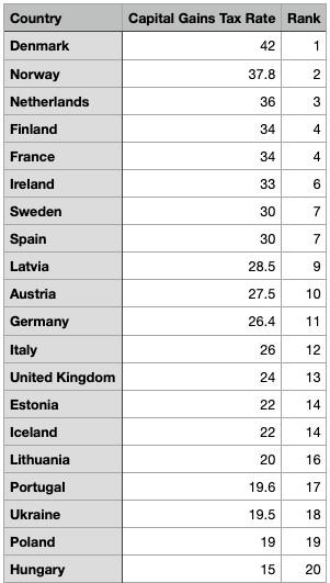 Maar het klopt, een meerwaardebelasting zou boven op al die andere beleggingsgerelateerde taksen komen. Maar dat is in veel andere landen ook het geval. Nederland: 36 procent meerwaardetaks, weliswaar op een fictief rendement, plus 15 procent dividendbelasting. Duitsland: 26,4 procent op meerwaarden, 25 procent op dividenden. Denemarken: 42 procent plus 27 procent.