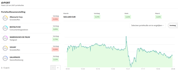 - drPORTETF: de andere portefeuille zal ik beheren met enkel trackers in. Die zal ik niet of amper wijzigen. ETF’s zijn immers voor de lange termijn bedoeld, minder geschikt als tradinginstrument. Het rendement zal dus afhangen van de marktevolutie én van de juiste selectie van de trackers.