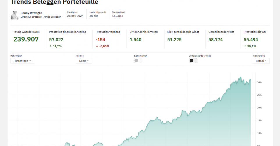 We hebben heugelijk nieuws voor onze surfers op Trends Beleggen Live. Voortaan kunt u ook de voorbeeldportefeuille van Trends Beleggen dagelijks opvolgen.