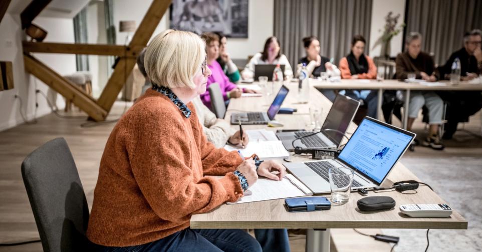 De Babelleggers zijn met vijftien. Allemaal vrouwen die willen leren beleggen en willen leren van elkaar. Want iedereen brengt wel iets extra’s mee aan tafel – kennis van een bepaalde sector of een bepaald product bijvoorbeeld. Lieve Decock stelt een vergaderzaal ter beschikking voor de maandelijkse bijeenkomsten in Hotel B, dat ze samen met haar echtgenoot uitbaat. Samen met de twee andere Lieves in het bestuur van de beleggingsclub handelt ze ook de praktische kant af. “Het verslag van de vorige vergadering wordt unaniem goedgekeurd, want niemand heeft opmerkingen doorgegeven”, zegt een van de Lieves aan het begin van de vergadering.