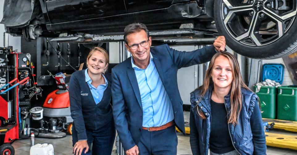 Tijdens de fotosessie poseert Guy Valckenier naast zijn dochter Femke en zijn nicht Lauren Valckenier, de dochter van zijn broer Koen (55). Allen werken ze in het bedrijf. Koen is vooral de technisch vaardige man en doet het gebouwenbeheer. Zus Peggy (53) leidt Carrosserie Valco. Ook vier telgen van de derde generatie zijn aan de slag bij de autogroep. “Alle kinderen hebben eerst twee tot drie jaar elders werkervaring opgedaan”, zegt Guy Valckenier. “Ze beginnen op de werkvloer, aan de receptie. De bedoeling is dat ze in één tot twee jaar alles leren, zodat ze alle aspecten van ons bedrijf kennen: de receptie, de dienst na verkoop, het magazijn, de bestelling van nieuwe wagens, de verkoop en de levering van de wagens.”