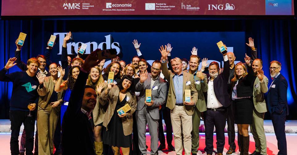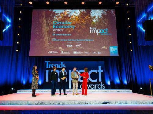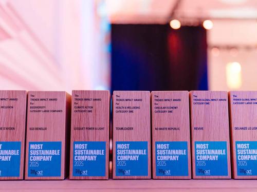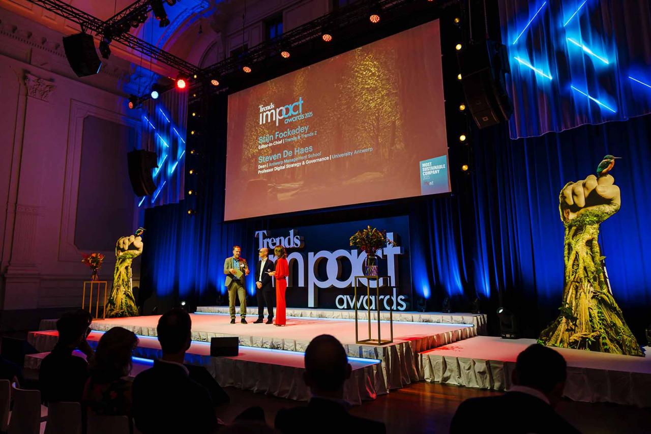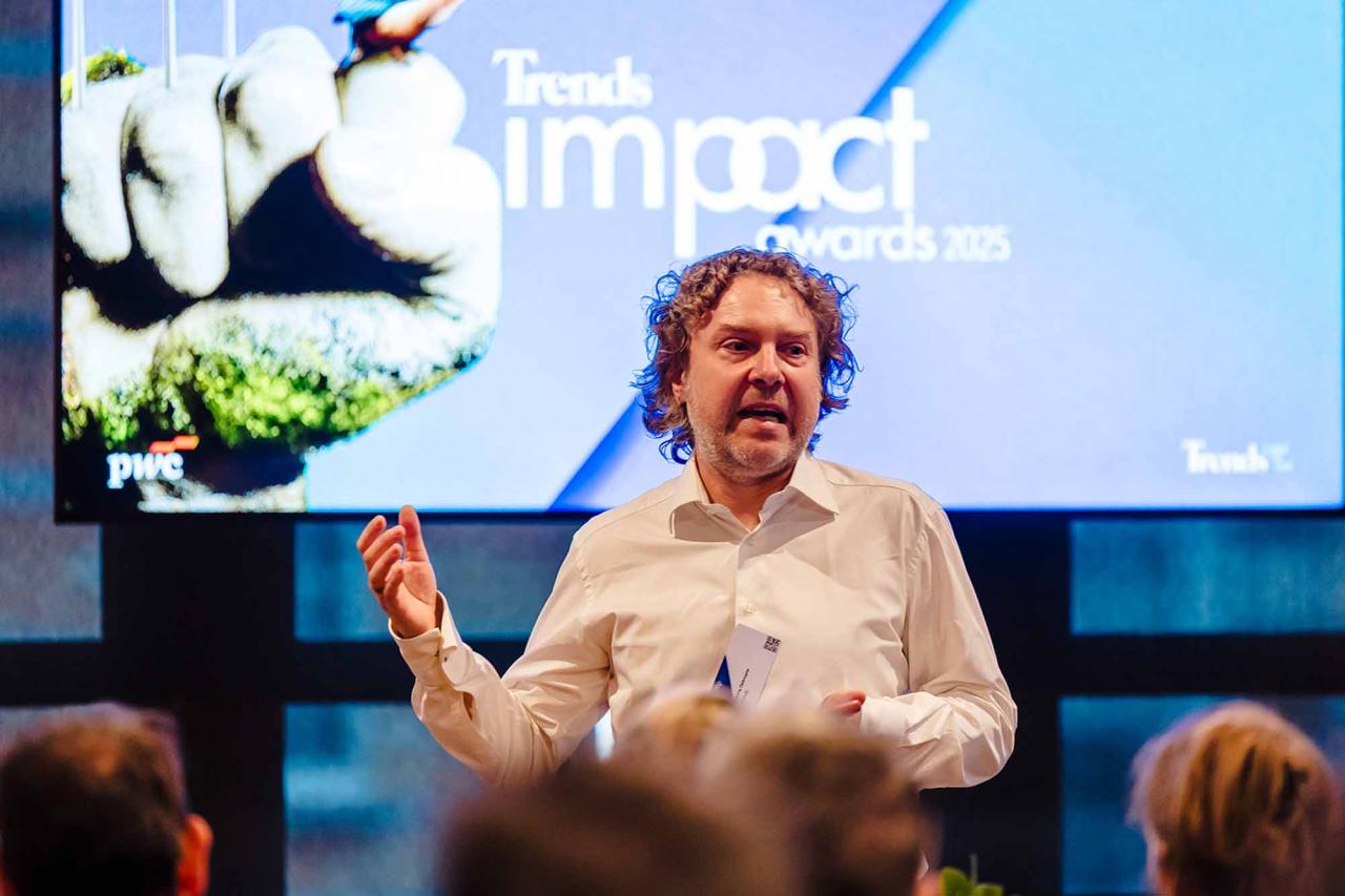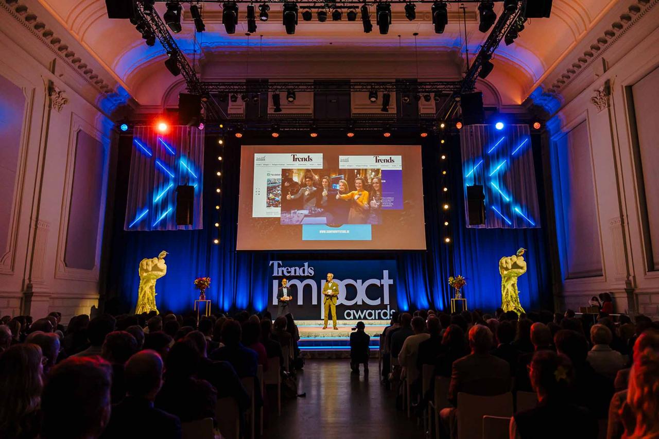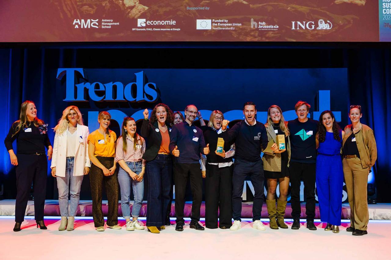 Op een gala-avond in Tour & Taxis in Brussel heeft Trends, in samenwerking met PwC België en Antwerp Management School, donderdagavond zijn Impact Awards voor 2025 uitgereikt aan kmo’s en grote bedrijven die met hun projecten een duurzame impact creëren op hun omgeving. Ontdek hier alle winnaars. Bekijk hieronder een fotoreeks van het event, dat dit jaar werd voorafgegaan door de Trends Impact Corners Break-out Sessions met enkele interessante sprekers. Klik op het vierkantje om de fotoreeks uit te vergroten. Copyright: Leyla Hesna.