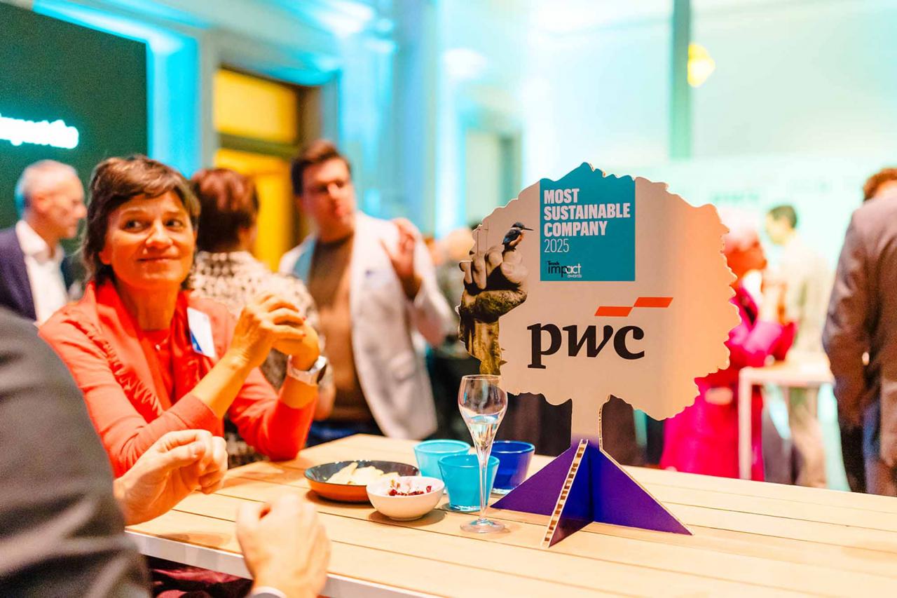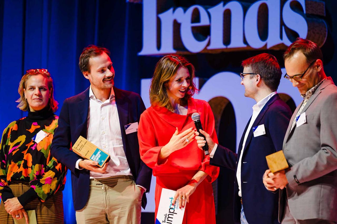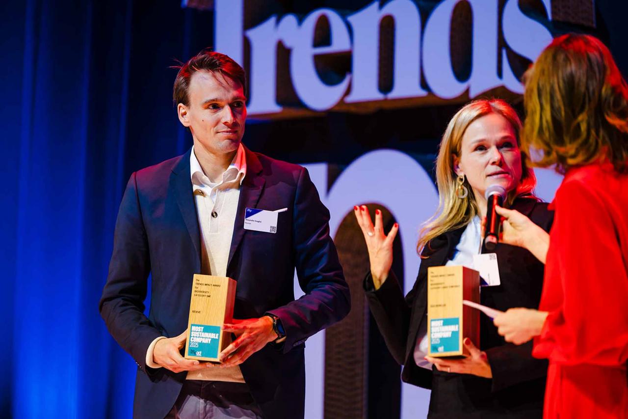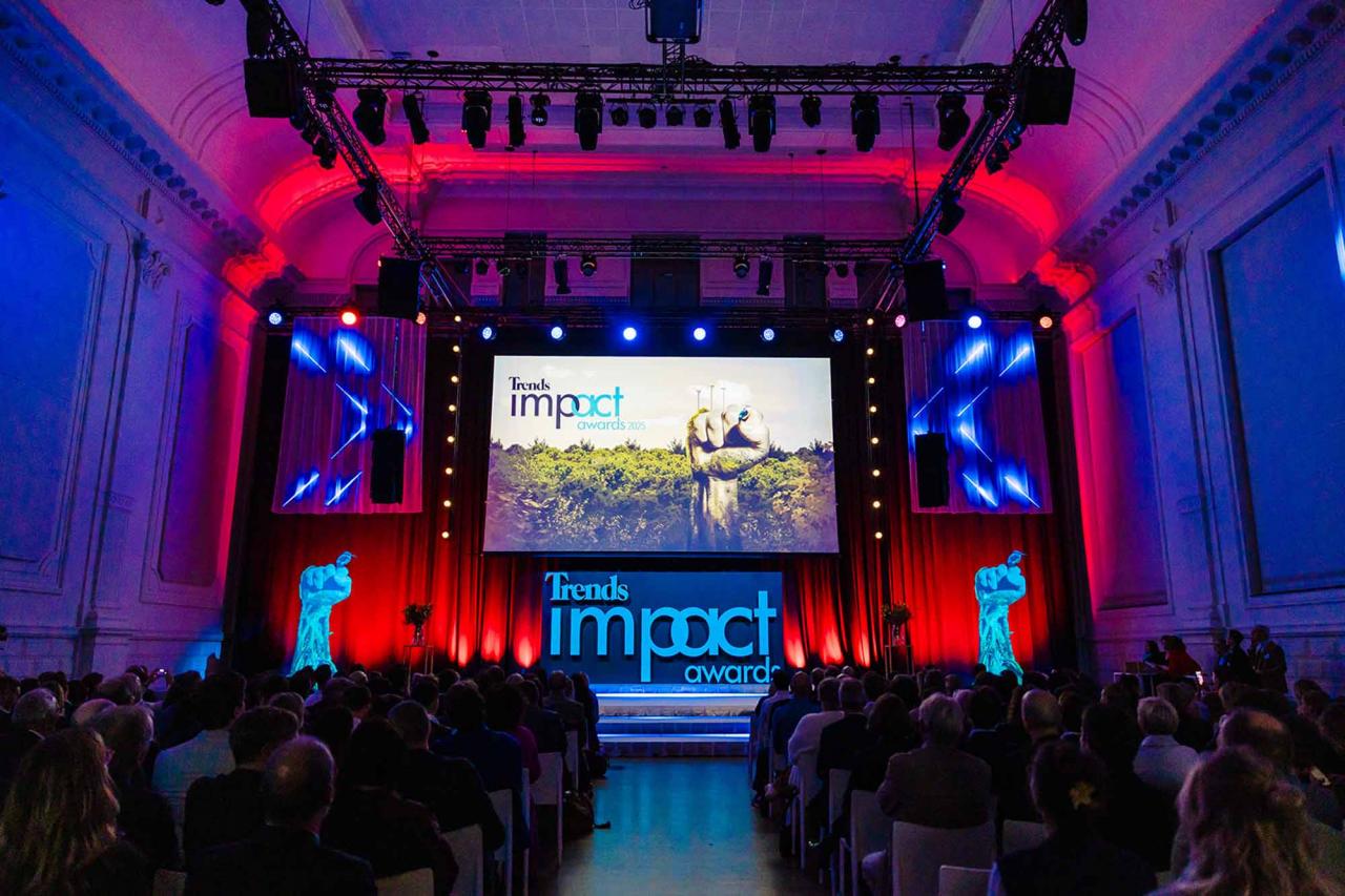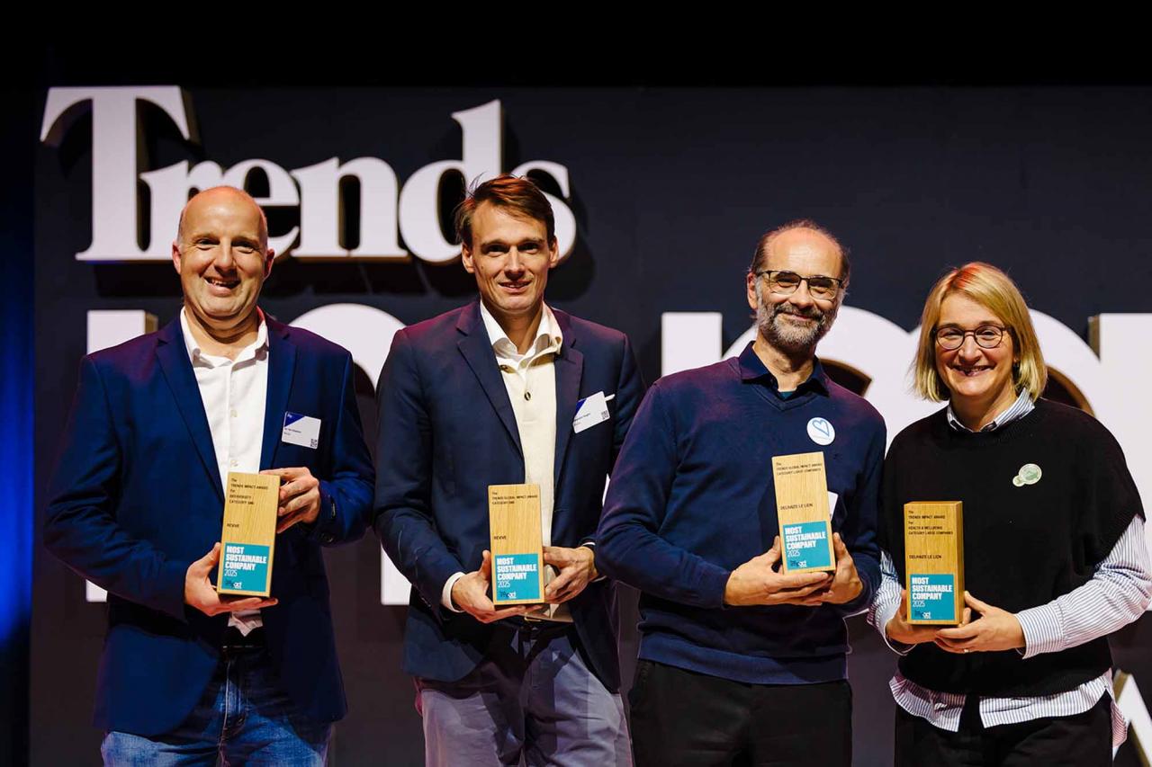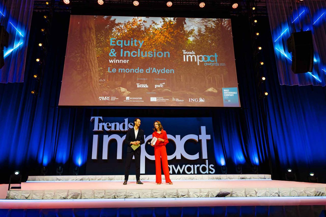 Op een gala-avond in Tour & Taxis in Brussel heeft Trends, in samenwerking met PwC België en Antwerp Management School, donderdagavond zijn Impact Awards voor 2025 uitgereikt aan kmo’s en grote bedrijven die met hun projecten een duurzame impact creëren op hun omgeving. Ontdek hier alle winnaars. Bekijk hieronder een fotoreeks van het event, dat dit jaar werd voorafgegaan door de Trends Impact Corners Break-out Sessions met enkele interessante sprekers. Klik op het vierkantje om de fotoreeks uit te vergroten. Copyright: Leyla Hesna.