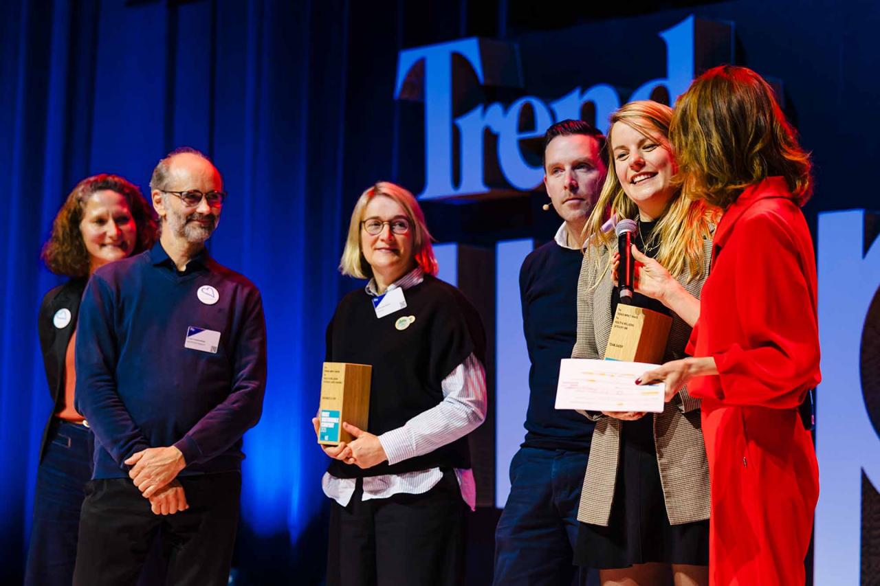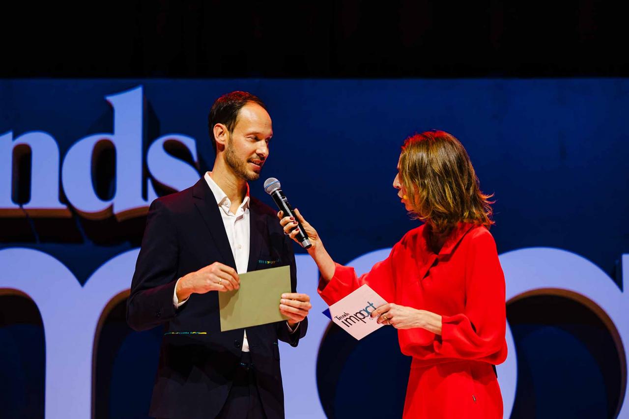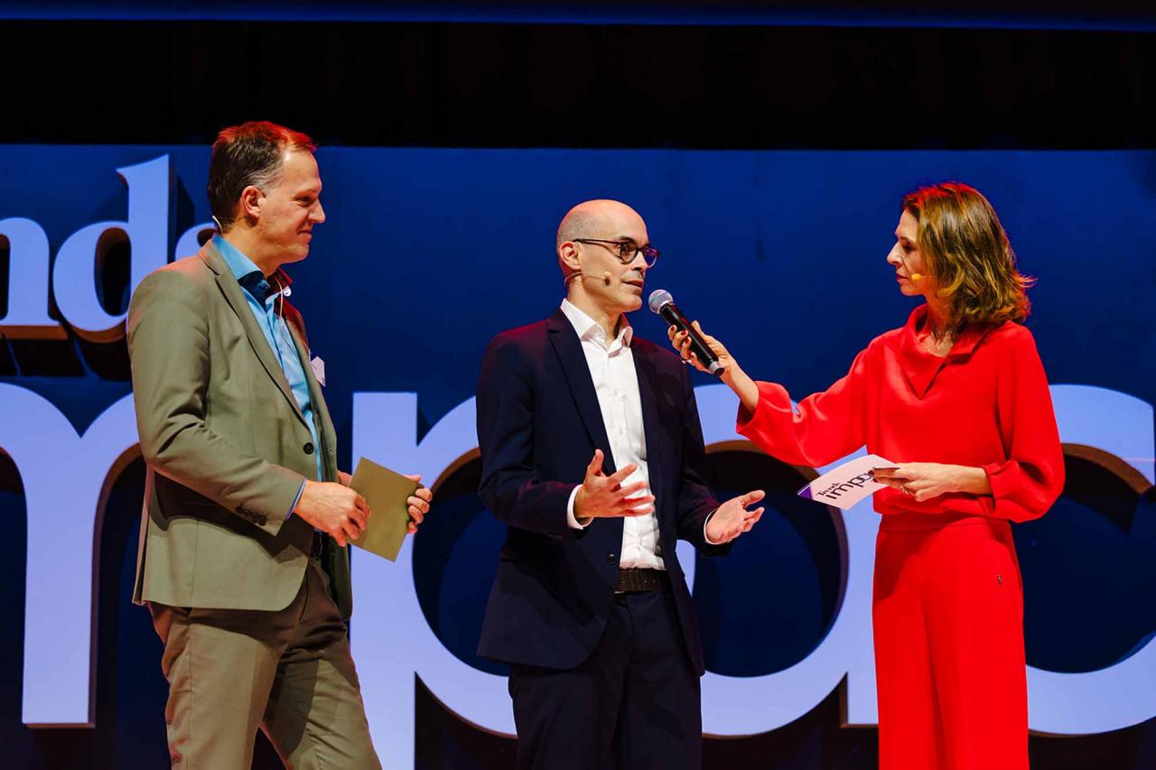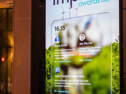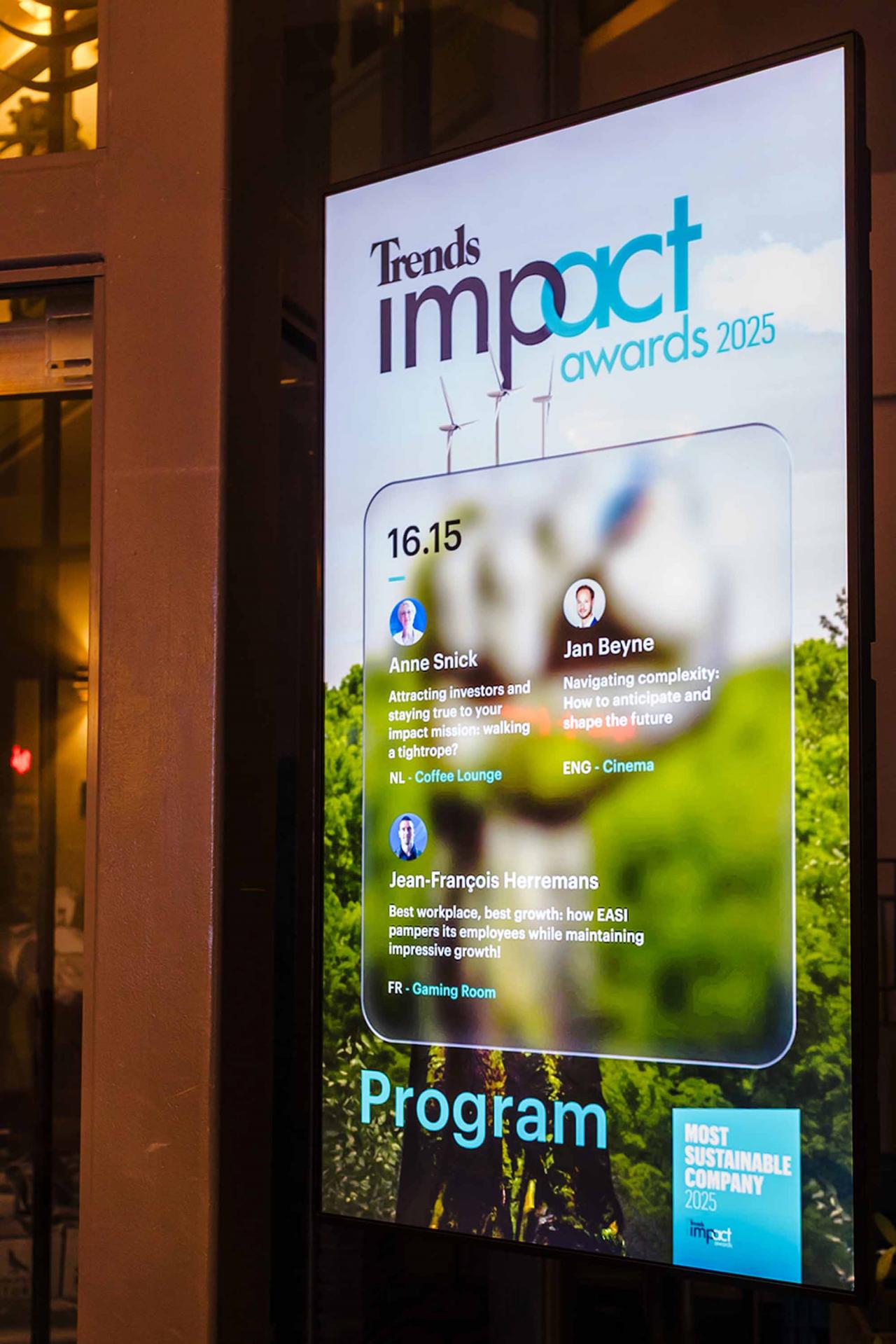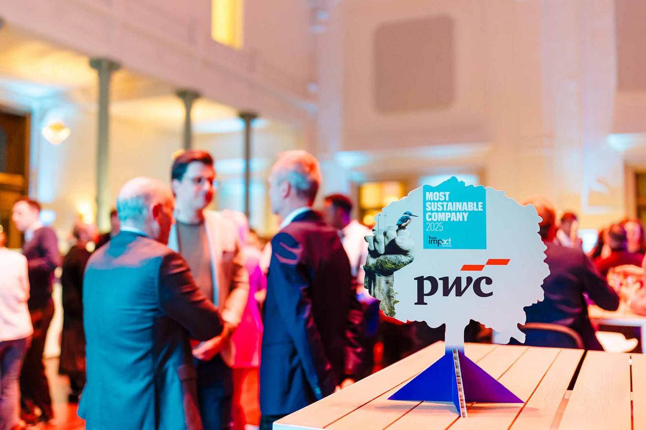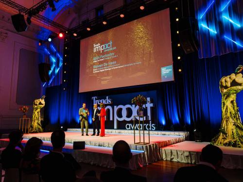Op een gala-avond in Tour & Taxis in Brussel heeft Trends, in samenwerking met PwC België en Antwerp Management School, donderdagavond zijn Impact Awards voor 2025 uitgereikt aan kmo’s en grote bedrijven die met hun projecten een duurzame impact creëren op hun omgeving. Ontdek hier alle winnaars. Bekijk hieronder een fotoreeks van het event, dat dit jaar werd voorafgegaan door de Trends Impact Corners Break-out Sessions met enkele interessante sprekers. Klik op het vierkantje om de fotoreeks uit te vergroten. Copyright: Leyla Hesna.