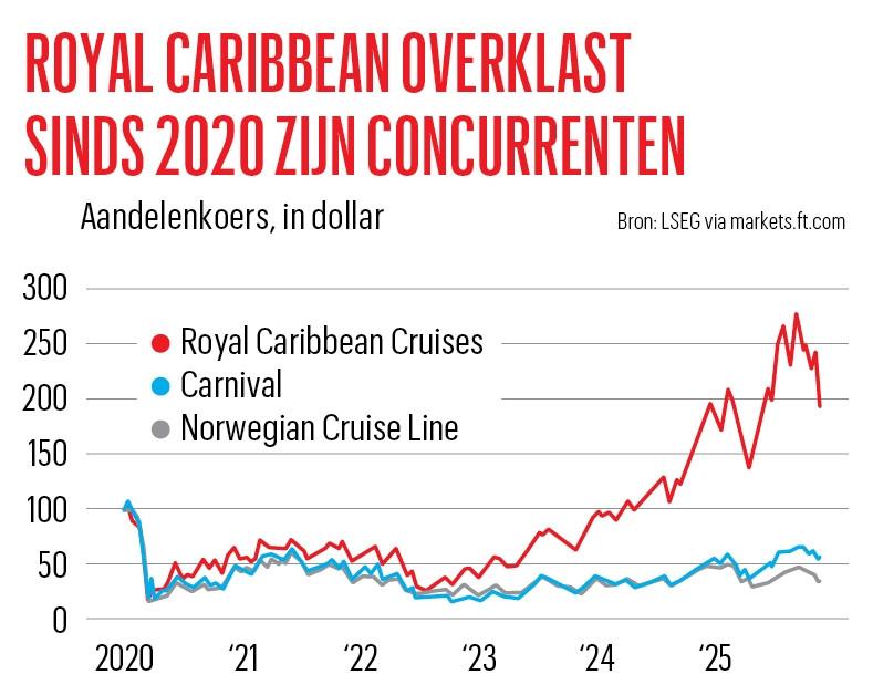 Royal Caribbean, Carnival en Norwegian hebben allemaal hun winstverwachtingen voor het hele jaar naar boven bijgesteld, dankzij de vlot lopende boekingen in 2025. In 2024 steeg het aantal cruisepassagiers met bijna 10 procent ten opzichte van het jaar ervoor, tot een record van bijna 35 miljoen.