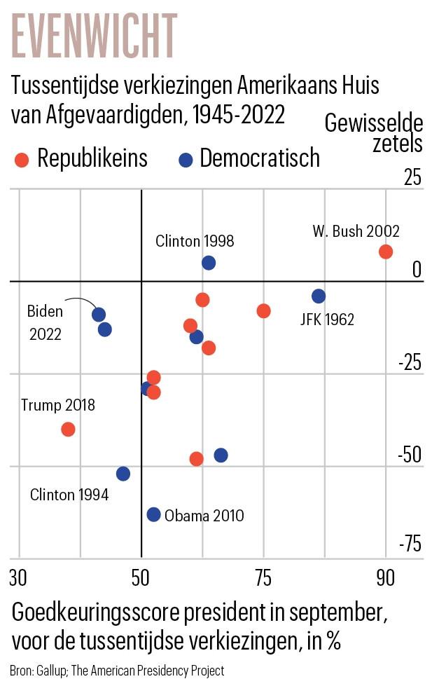 De partij die niet aan de macht is, wint bijna altijd terrein bij de tussentijdse verkiezingen. Trump zou dus een flinke klap kunnen krijgen, versterkt door de hoge prijzen en de trage arbeidsmarkt. De Democraten hoeven slechts een handvol zetels te winnen om het Huis te heroveren. Als dat gebeurt, krijgen ze de bevoegdheid om in de aanval te gaan.