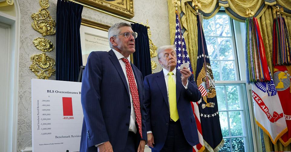 De Amerikaanse president Donald Trump heeft donderdag in het Oval Office van het Witte Huis alternatieve economische statistieken voorgesteld. De grafieken van econoom Stephen Moore zouden zijns inziens aantonen dat de economie het beter doet nu hij de plak zwaait, dan toen Joe Biden president was. Een week geleden gaf president Trump nog de opdracht om Erika McEntarfer, het hoofd van het statistiekbureau van het Amerikaanse ministerie van Werk, te ontslaan, na tegenvallende jobcijfers.