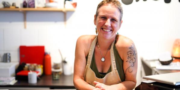 Kern van de zaak Kern van de zaak Isabelle Descheemaeker (KarmaMarkt): ‘Ik besteed niets uit. Alles wat je hier ziet, heb ik zelf gedaan’ Met KarmaMarkt wil Isabelle Descheemaeker een ander winkelverhaal schrijven. Geen snelle consumptie of overvolle rekken, maar bewust kiezen, lokaal kopen en verpakkingsvrij winkelen. In haar winkel in Brugge verkoopt ze biologische voeding en duurzame producten, met een duidelijke missie. ‘Ik begon klein, met een beperkt aanbod. Maar ik vroeg continu aan mijn klanten: ‘wat mis je hier nog?’’