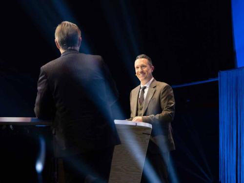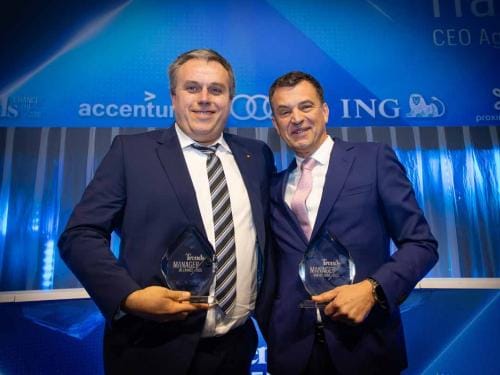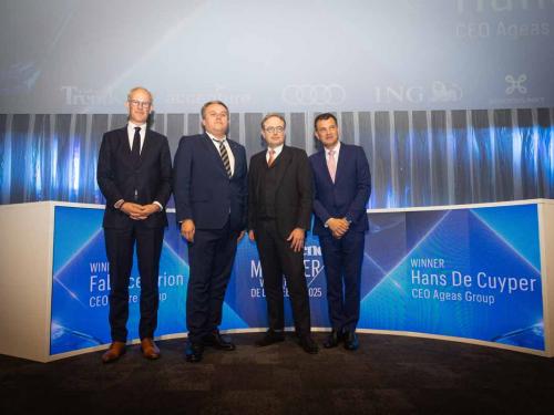 Hans De Cuyper, de CEO van de verzekeringsgroep Ageas, is verkozen tot Trends Manager van het Jaar 2025, tijdens de officiële uitreiking in Brussels Expo in aanwezigheid van de 1.500 kopstukken uit de wereld van de Belgische economie, politiek en ondernemen. Bekijk hieronder een fotoreeks van het gala-event. Klik op het vierkantje rechtsonderaan om de fotoreeks te vergroten. Lees meer in dit dossier.