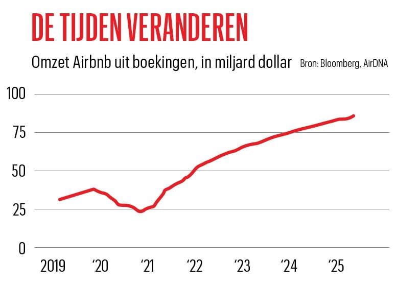 Toen hij in 2007 samen met anderen Airbnb oprichtte, was Brian Chesky een enthousiaste 26-jarige die blauwe spijkerbroeken en onopvallende T-shirts droeg. Tegenwoordig is de volledig in het zwart geklede 44-jarige techbaas een heel ander figuur. En net als zijn CEO is ook Airbnb met de jaren veranderd. Het boekingsplatform, dat meer dan 8 miljoen accommodaties in bijna elk land ter wereld aanbiedt, is “nu een volwassen bedrijf”, benadrukt Chesky. De dagen van snel geld uitgeven om snel te groeien zijn voorbij. De operationele marge van Airbnb bedroeg in het tweede kwartaal maar liefst 21 procent. In augustus kondigde het bedrijf aan dat het voor 6 miljard dollar aandelen zou terugkopen. De marktwaarde van 78 miljard dollar overtreft die van Marriott, ‘s werelds grootste hotelketen.