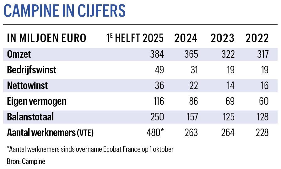 In Europa is Campine het op één na grootste recyclagebedrijf van loodzuurhoudende autobatterijen. “De elektrische auto is ons doodvonnis niet. In zo’n auto zit, naast de grote lithium-ionbatterij, ook een loodzuurhoudende batterij met een groot loodgehalte. Straks verwerken we 250.000 ton loodafval of 10 miljoen autobatterijen per jaar. We blijven de volgende decennia in business.”
