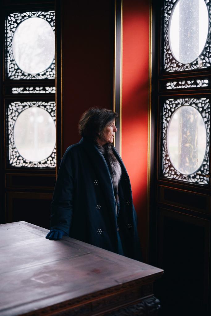 Ondanks de stabiliteitsproblemen en waterschade die het pand teisteren, blijft het interieur een lust voor het oog. Als een mysterieuze ruïne geeft het Paviljoen zijn geheimen prijs: een salon opgetrokken uit rode zijde, een zaal met Japanse en Chinese broderie, een toilet in art-nouveaustijl, een trap uit Belgisch marmer. “Datzelfde materiaal vind je in Versailles en het Vaticaan. Het was in de achttiende en negentiende eeuw het meest waardevolle marmer. Dit is geen paviljoen, maar een paleis! In de tijd van Leopold II was België rijk, hé. Er zijn veel debatten over de rol van Leopold en ik begrijp dat. Hij was een controversieel figuur, maar men kan niet ontkennen dat hij op zijn minst ambitie en visie had. Het is belangrijk om daarover te blijven spreken, zodat we de lessen uit het verleden niet vergeten.” Onze huidige koninklijke familie is begaan met de restauratie van het Paviljoen. Koningin Mathilde is zelfs erevoorzitter van het project. “We werken samen met de Regie der Gebouwen, die het pand min of meer staande hield sinds de sluiting in 2013. Twee leden van de Regie zetelen in de raad van bestuur van onze vzw. Die heet trouwens officieel vzw Chinese Paleis en de Zijderoutelanden. Het Chinees Paviljoen is een verouderde term en vandaag bouwt China aan een nieuwe Zijderoute. Dat is allemaal politiek geladen. Van mij mag je het Paviljoen voortaan het Chinese Paleis noemen.” Hennebert is 68 en naar eigen zeggen stilaan klaar om de fakkel over te dragen. Wie haar moet opvolgen als redder van het Belgisch erfgoed wanneer de site straks weer geopend is voor het publiek? Dat weet ze niet, al heeft ze wel een suggestie: “Misschien kan de staat iets doen zodat het niet altijd de barones hoeft te zijn. Ik kan geen donaties blijven vragen aan mijn contacten. Binnenkort gaan de mensen lopen als ze me zien” (lacht).